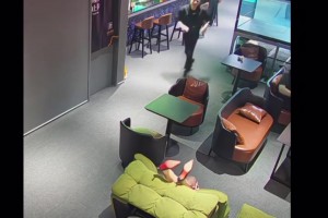 女子坐沙发不小心后仰摔倒!热心男士们赶紧上前帮忙.....
