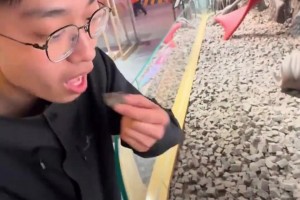春季出游看巧克力展,男子直接捡了一块吃起来了